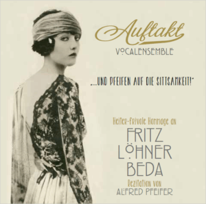 In „…und pfeifen auf die Sittsamkeit!“ widmen sich Auftakt und der Schauspieler Alfred Pfeifer ausschließlich der heiter- frivolen Seite von Fritz Löhner-Beda. Horst Zalto und Claudia Karner gestalteten das Programm und förderten dabei längst vergessene Perlen zu Tage. Die Liedauswahl gibt den Ensemblemitgliedern, die sonst nur a cappella singen, auch Gelegenheit, sich als Solisten und im Duett zu präsentieren. Dabei werden sie am Klavier (oft von Betty Trobisch oder Richard Kopplinger) begleitet.